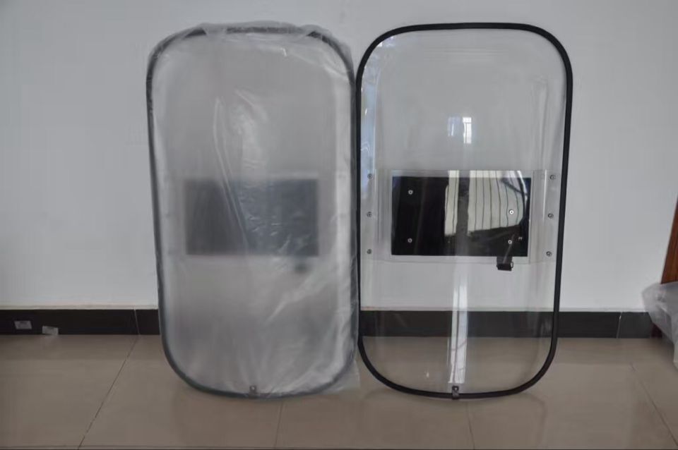 PC板防暴盾牌系列产品采用优质PC材料,具有透明高,重量轻,抗冲击力强坚固耐用,能抵御除枪炮之外的投掷物和尖税器械、酸类的袭击,防护能力强,安装固定牢靠,操作方便,
